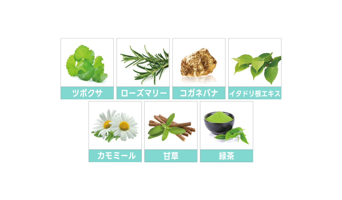 ツボクサやカモミールなど、7種類の植物エキスをブレンド。