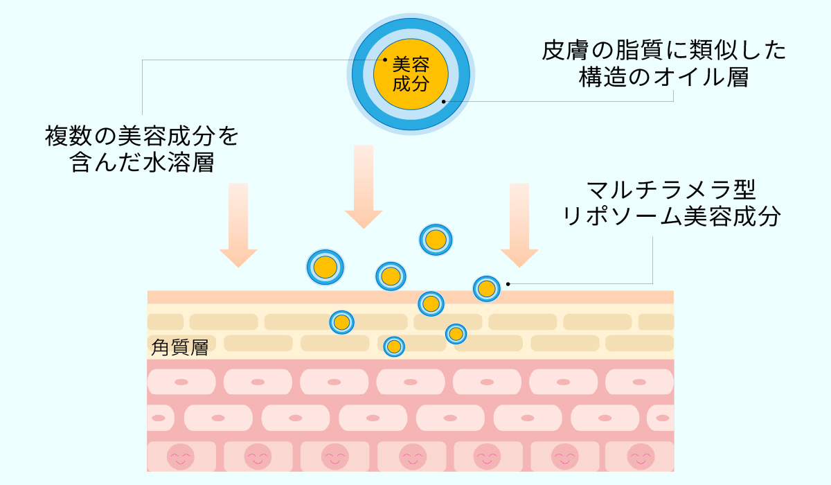 ラメラ&リポソーム技術※2により、美容成分を傷つけずに角質層まで素早く届け、持続的な保湿をサポートする