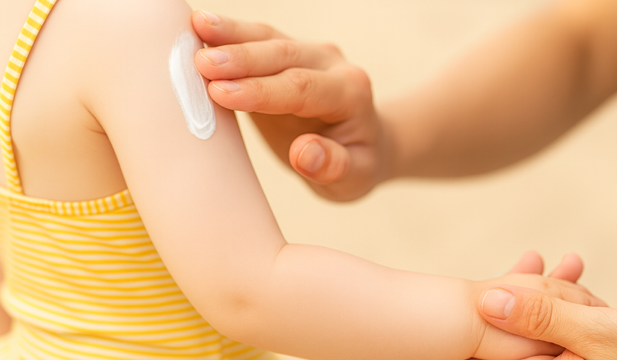 2)適量を取り出して紫外線が露出する部位にまんべんなく伸ばしてなじませます。